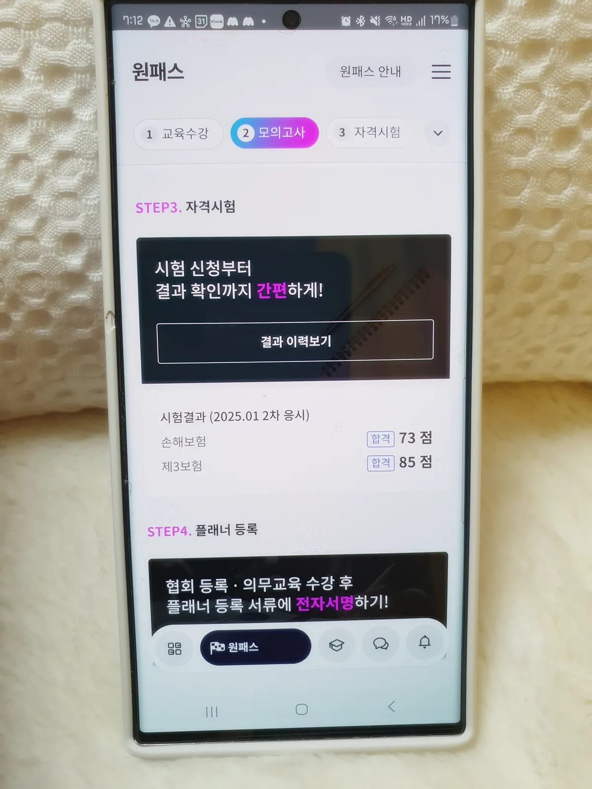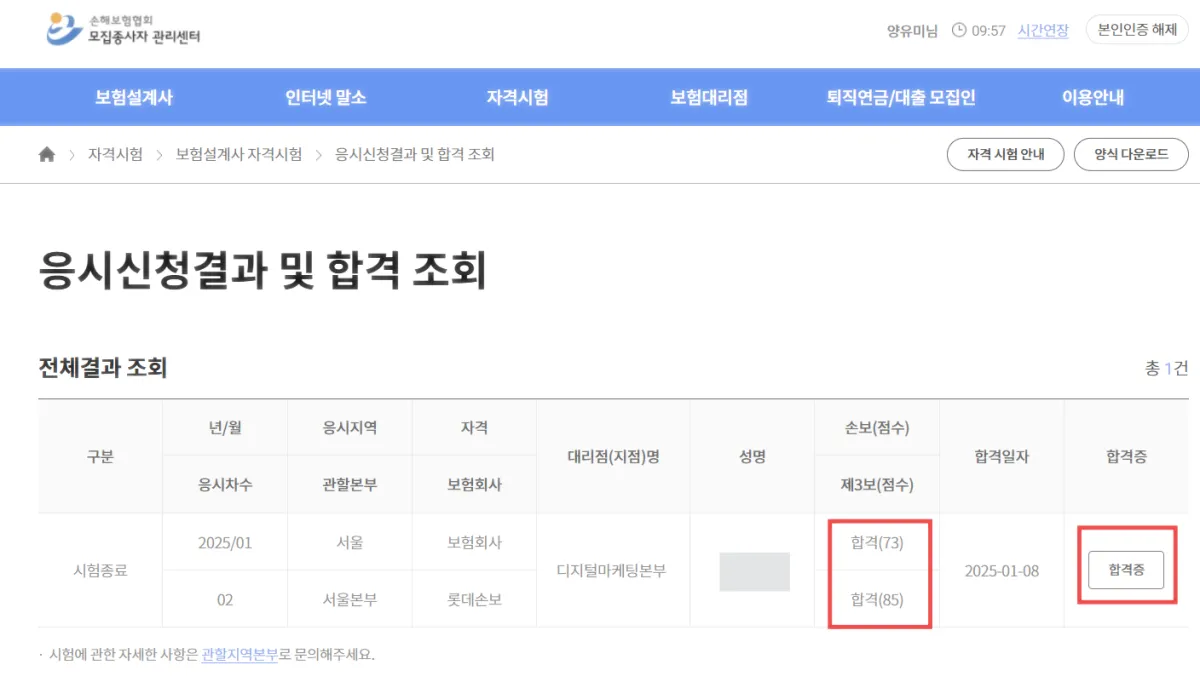 (결과는 어플에서도 확인가능, 합격증은 '손해보험협회'에서 '자격시험 > 응시신청결과 및 합격조회'에서 확인 가능)