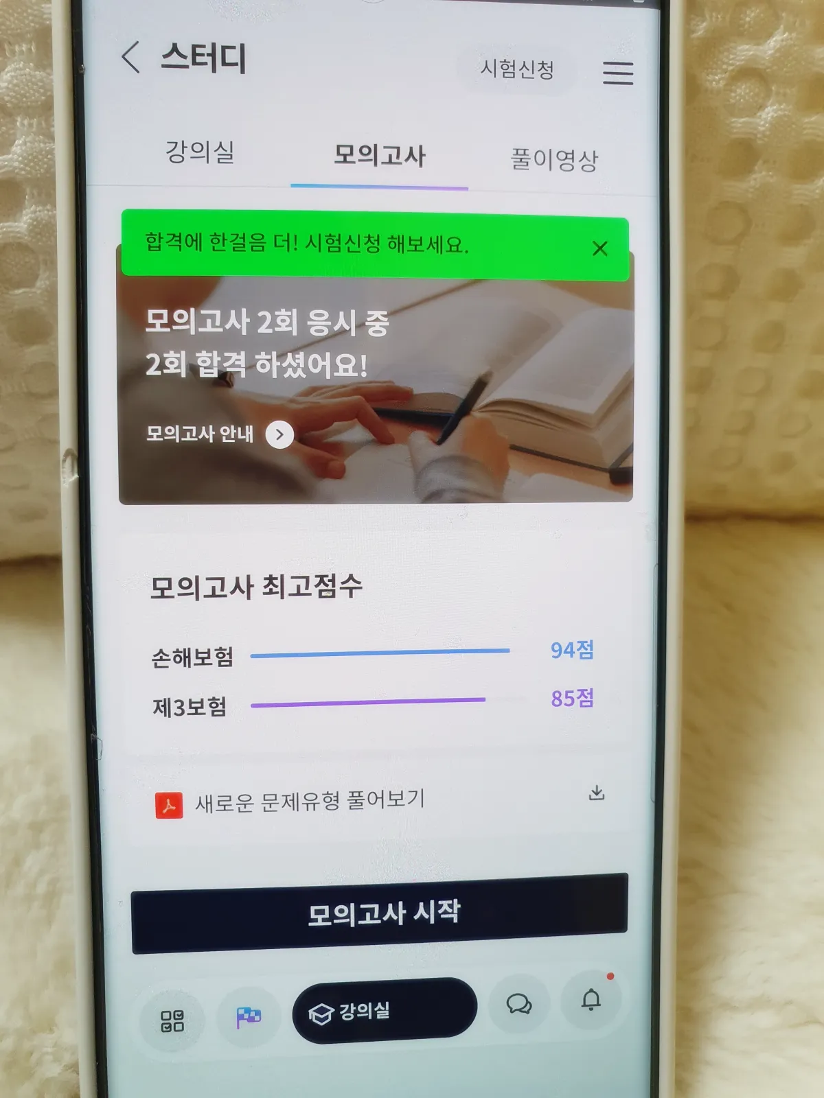 4 교육영상을 수강해 주셨다면 '모의고사'를 어플에서 볼 수 있는데 꼭 '모의고사'를 해보시는 것을 추천합니다.